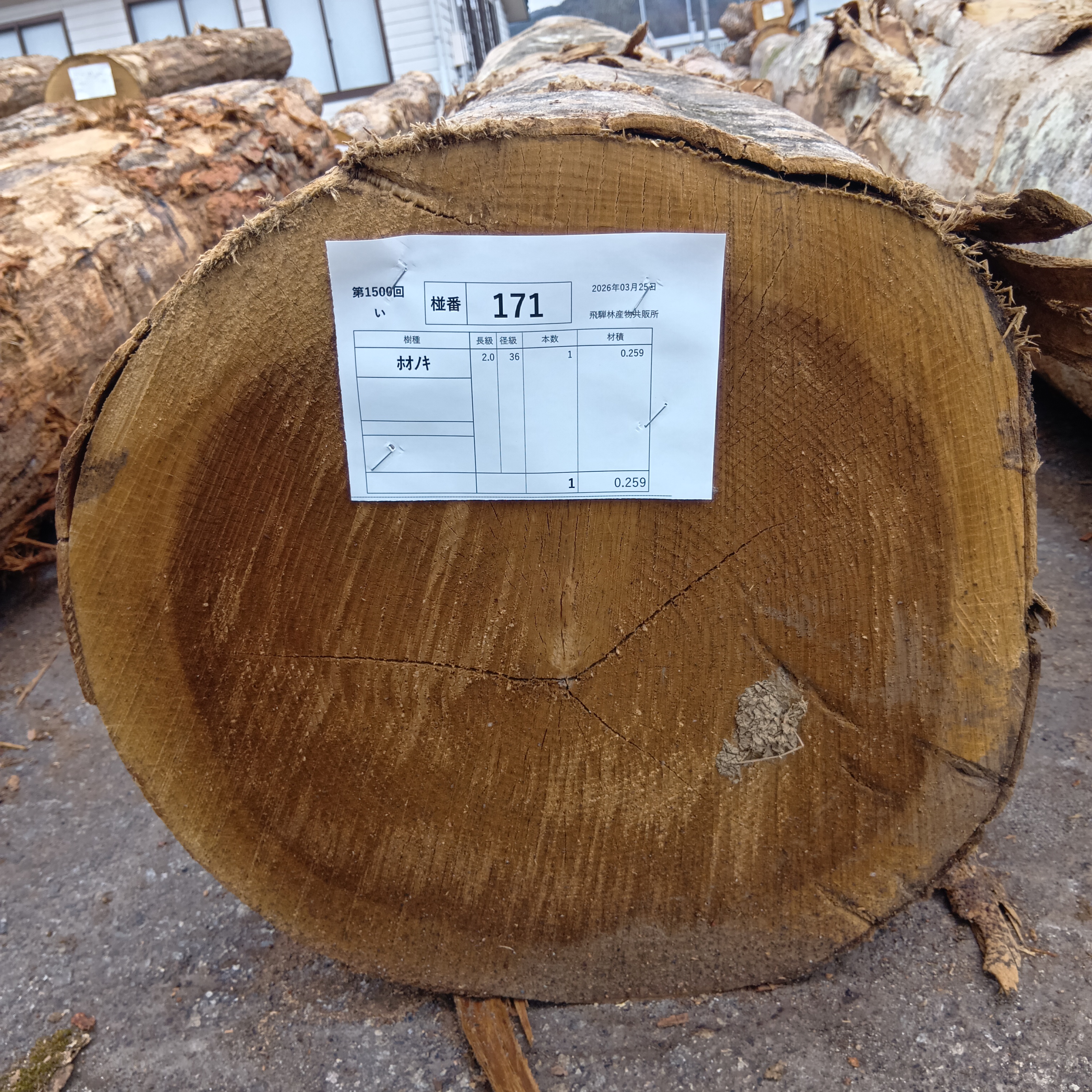 飛騨共販所 第1500回(3/25市)出品材(広葉樹②)